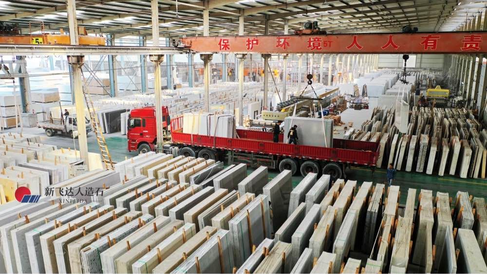 福建省南安新飛達石材有限公司,位于福建省南安市官橋鎮(zhèn)-中國石材之都,占地6萬平方米,總投資2億元,人造石細分市場下專業(yè)人造崗石、水磨石研發(fā)、設計、生產(chǎn)、銷售于一體的新型多元化環(huán)保企業(yè),年產(chǎn)量達300萬平方,年營業(yè)額均超3億元。