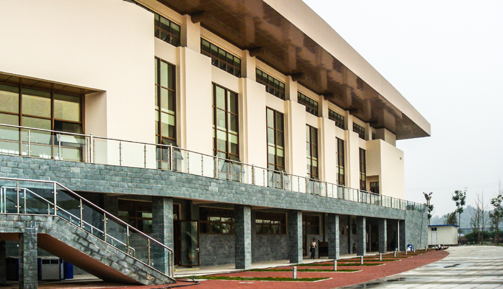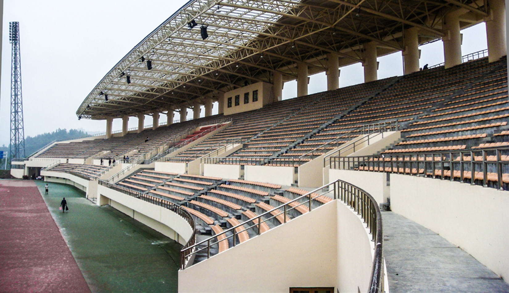 北川羌族自治縣體育中心位于新縣城南端的95 號街坊內(nèi),用地面積5.6 公頃,現(xiàn)狀地形平坦。北側(cè)為濱河路,毗鄰永昌河公園景觀帶,西側(cè)為禹龍路,隔路與安昌河相望,東側(cè)為貫穿新縣城的交通干道- 齊魯大道,用地四周環(huán)路,交通便利,地處北川新縣城的南門戶,是進(jìn)入縣城的標(biāo)志性建筑。