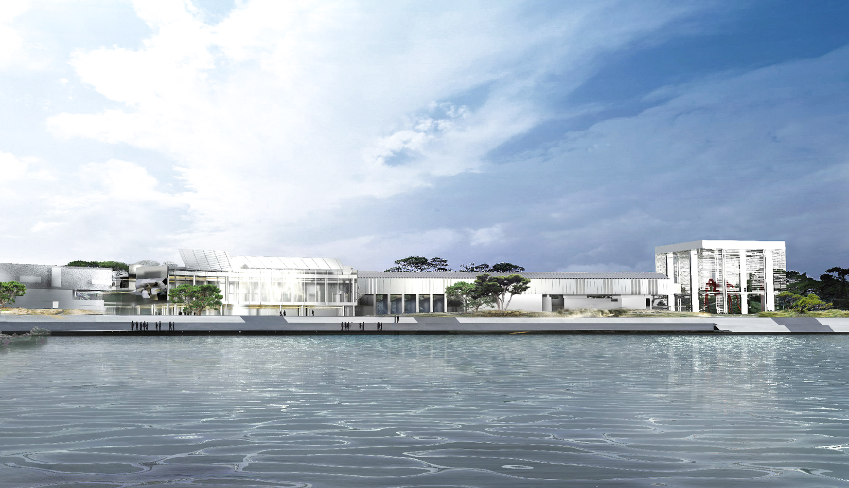 簡潔典雅的設(shè)計風格,與濱海自然環(huán)境相協(xié)調(diào),同時聘請世界級景觀設(shè)計大師擔綱景觀設(shè)計,體現(xiàn)了以美術(shù)館為主體的、以藝術(shù)創(chuàng)作、藝術(shù)展覽和藝術(shù)教育為主題的建筑和景觀空間,為當?shù)厥忻窈椭型庥慰吞峁┮粋€與自然、與藝術(shù)充分交流的花園,為藝術(shù)家提供一個自由的、充滿各種可能性的創(chuàng)作基地。