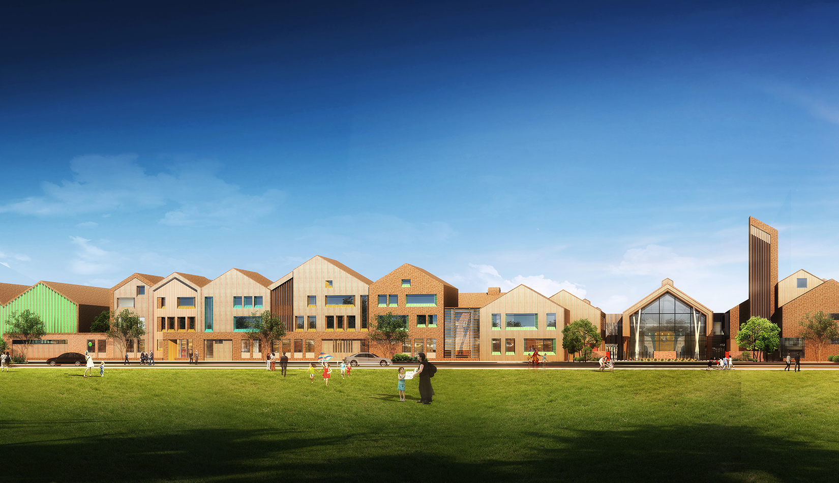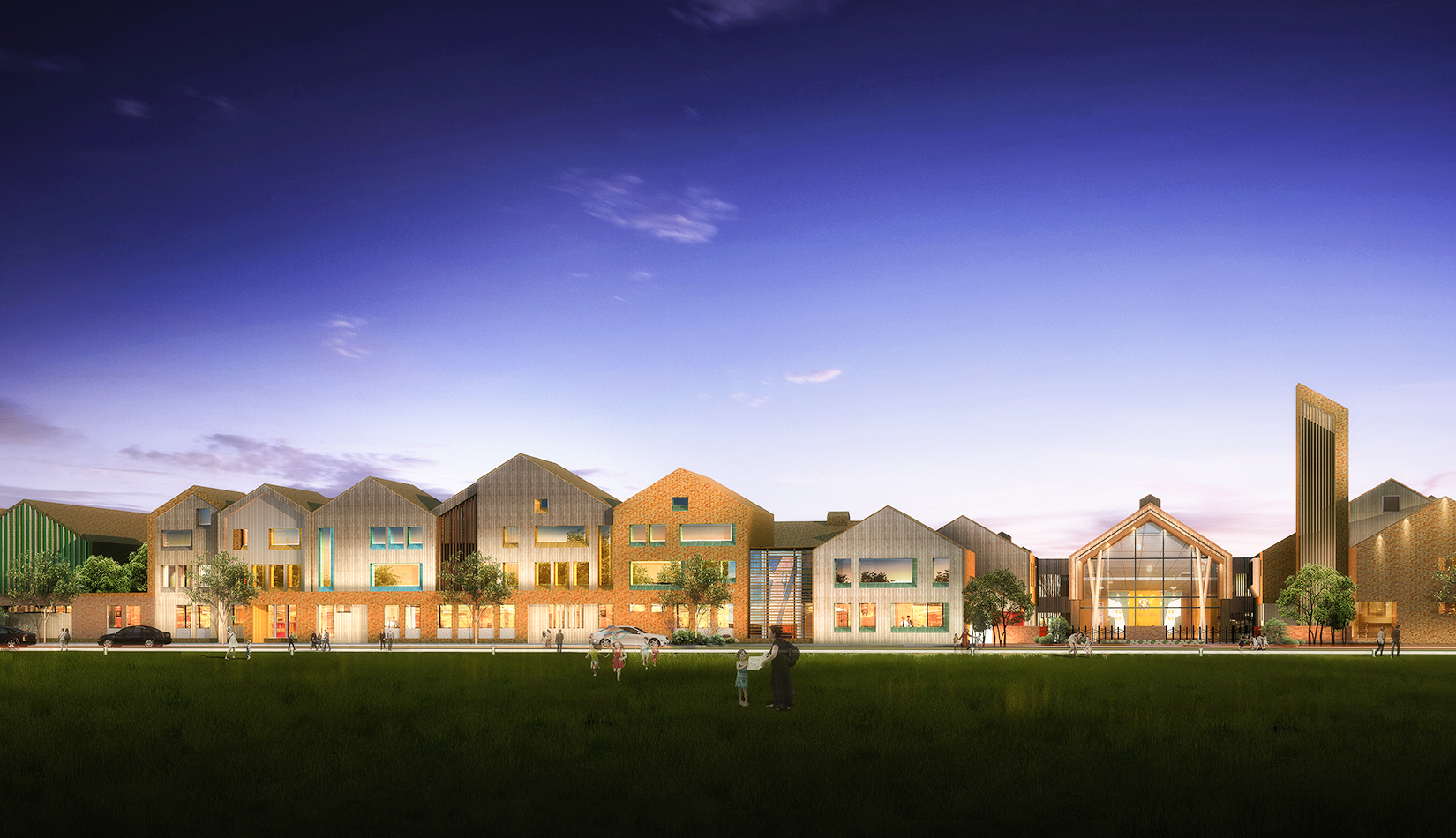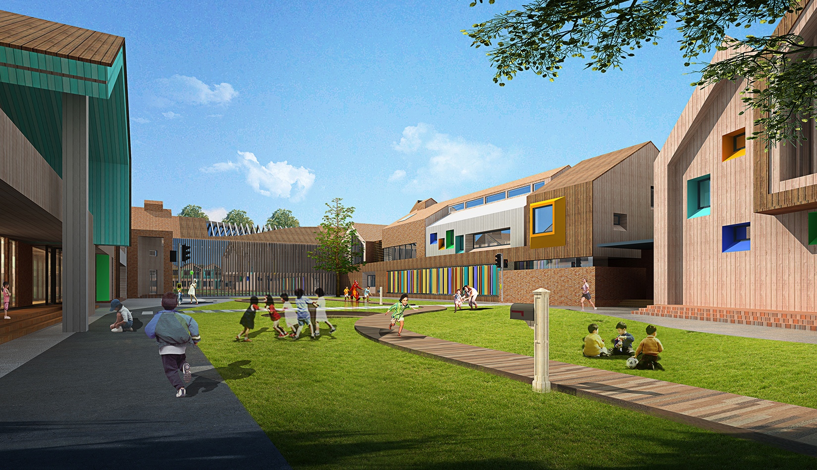 該項(xiàng)目設(shè)計(jì)以“陽(yáng)關(guān)小鎮(zhèn)”為設(shè)計(jì)概念,采用“城鎮(zhèn)”規(guī)劃布局,通過(guò)引入街道、廣場(chǎng)、庭院等元素,將校園空間打造為小鎮(zhèn)場(chǎng)景,讓學(xué)生感受城市氛圍及生活氣息。