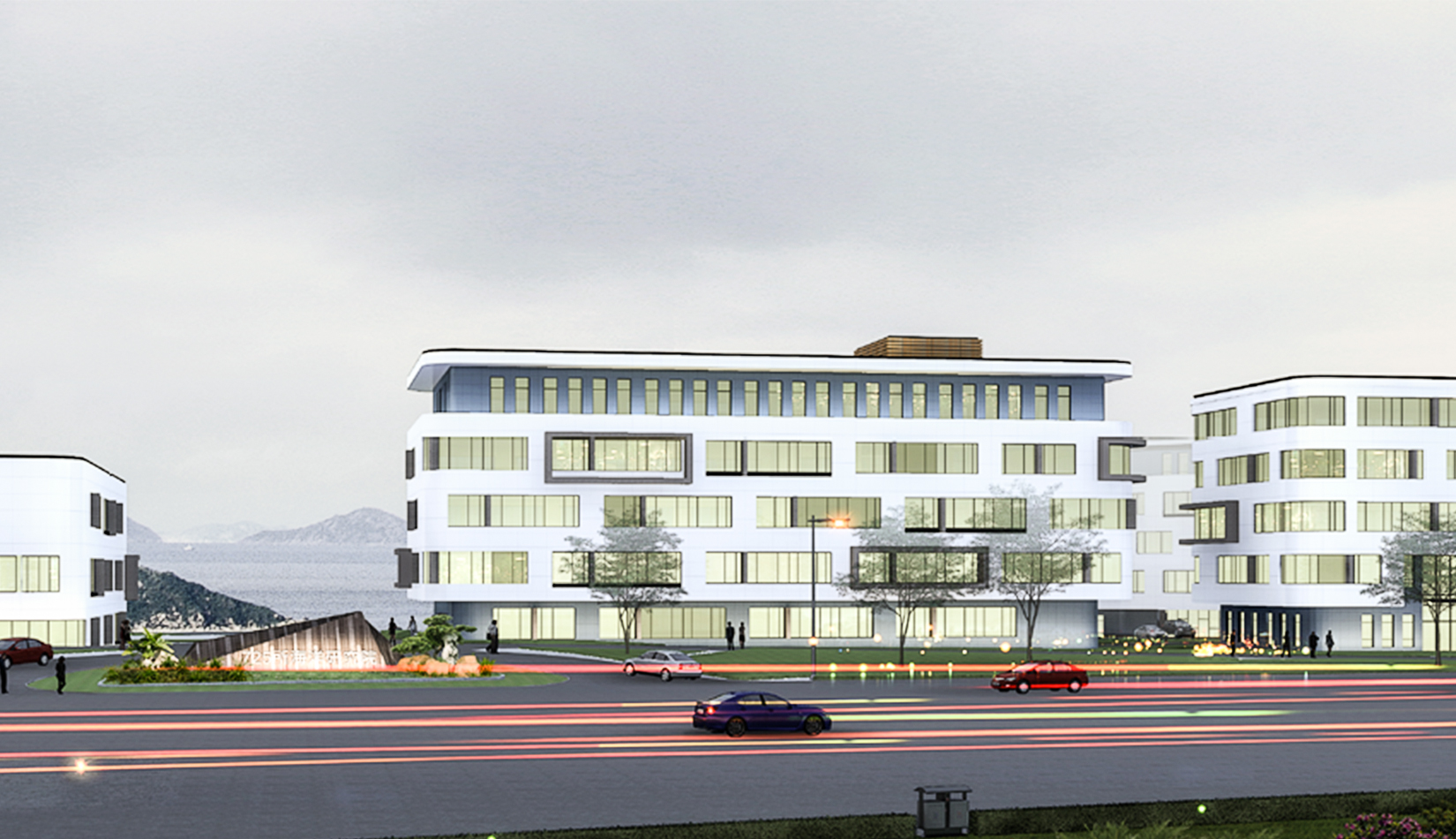 建筑主體平面形式方整,采用中央軸線布局;立面構(gòu)圖嚴謹,注重構(gòu)圖比例及細節(jié)構(gòu)造,力圖通過現(xiàn)代化的設(shè)計理念,營造良好的建筑形象,體現(xiàn)中船重工725 研究所務(wù)實求真嚴謹?shù)淖黠L(fēng)。